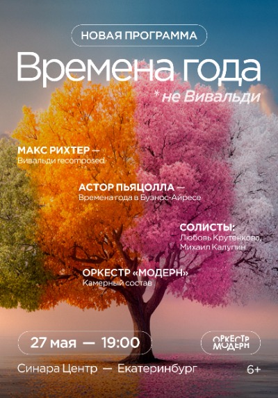 🗎 [от 1900₽] — Мы открываем новую главу в жизни оркестра «Модерн» — направление «Классика». Новый этап — и новый звук. Два концерта для солирующей скрипки и оркестра. Две вселенные: минималистичную нежность Макса Рихтера и темпераментное танго Астора Пьяццоллы. Вас ждёт путешествие сквозь времена и континенты: «Времена года» в версии Макса Рихтера — это музыка‑размышление. Она не кричит, а шепчет: о смене сезонов, о хрупкости каждого мгновения, о тепле, которое всегда где‑то рядом. Рихтер берёт барочный шедевр и наполняет его новым смыслом — так, что классика становится близкой и понятной сегодня. «Времена года в Буэнос‑Айресе» Пьяццоллы — это музыка, в которой танго становится дыханием природы. Весна в ней — вихрь эмоций, лето — знойный шёпот, осень — печальный танец дождя, зима — скрытый огонь. В каждой ноте чувствуется биение жизни, ритм города и страсть аргентинского танго. В этом вечере — идея обновления. Он рассказывает, как традиции переосмысляются, а разные культурные коды создают новый музыкальный язык. Нам важно, чтобы вы унесли с собой то особое тепло, что появляется, когда музыка звучит для всех — и для каждого лично. Программа: М. Рихтер-Времена года recomposed *Весна *Лето *Осень *Зима А. Пьяццолла-Времена года в Буэнос-Айресе *Primavera portena *Verano portena *Otono portena *Invierno portena Исполнители: Любовь Крутенкова (скрипка), Михаил Калупин (скрипка) Оркестр «Модерн» Дирижер-Алексей Доркин